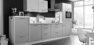 Küche in der Frontausführung Magnolie hochglanz lackiert